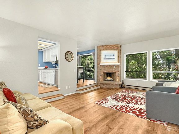A sprawling condo that lives like a home! 2 primary ensuites & one has a romantic fireplace with territorial views to the tree tops. A home office with a skylight & gorgeous, easy to care for floors throughout. The spacious great room has another fireplace for a relaxing ambiance & the cook’s kitchen does not disappoint. Guests can relax in the dining area while you prepare the bbq on the sun deck. Another bedroom & a full bath, a walk-n storage closet, more storage in the common hallway plus a laundry room. This quiet complex has only 37 units & is nestled down a dead end road. The community features are a secure entry, exercise room & guest parking. Perfect location close to Coscto, bus routes, light rail, Edmonds beaches & everything!