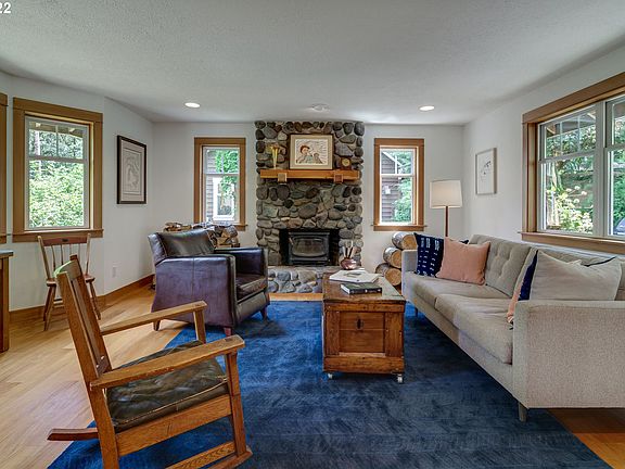 Updated farmhouse w/incredible natural light & treetop views,located in a storybook Forrest Park setting - Lincoln HS district.Quality details include CVG fir trim & doors,custom stone fireplace,tiled bathrooms,private landscaped outdoor areas,gourmet kitchen & fam-room. Primary BR en suite. Den space w/vaulted ceilings & built-in fir bookcases. Garage finished to be used as a work/office/studio space & the upper level can be used as same & has a pellet stove.ADU potential! Forest paths nearby.