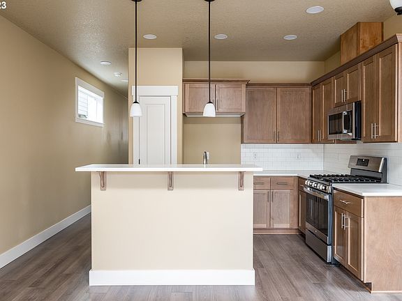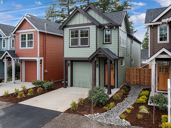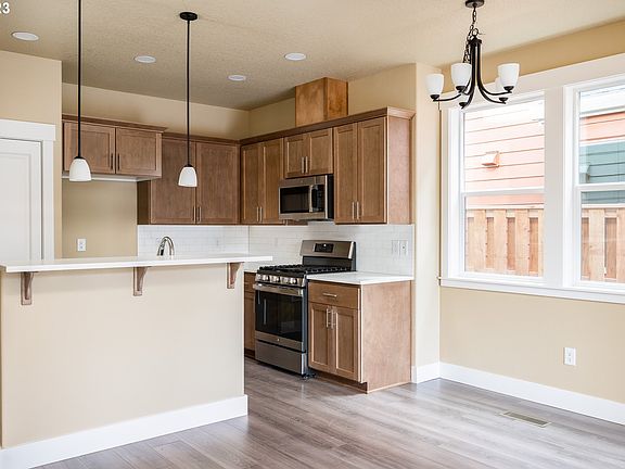 Kitchen custom cabinets, island, quartz counter tops, SS appliances & Micro-hood. Water resistant laminate floors. Primary BR with walk-in closet and double vanity sink in Primary bath. High efficiency gas furnace. Large backyard and close to transit. Hurry, garages are going away in Portland! Special pricing for SDC waiver qualified buyers.