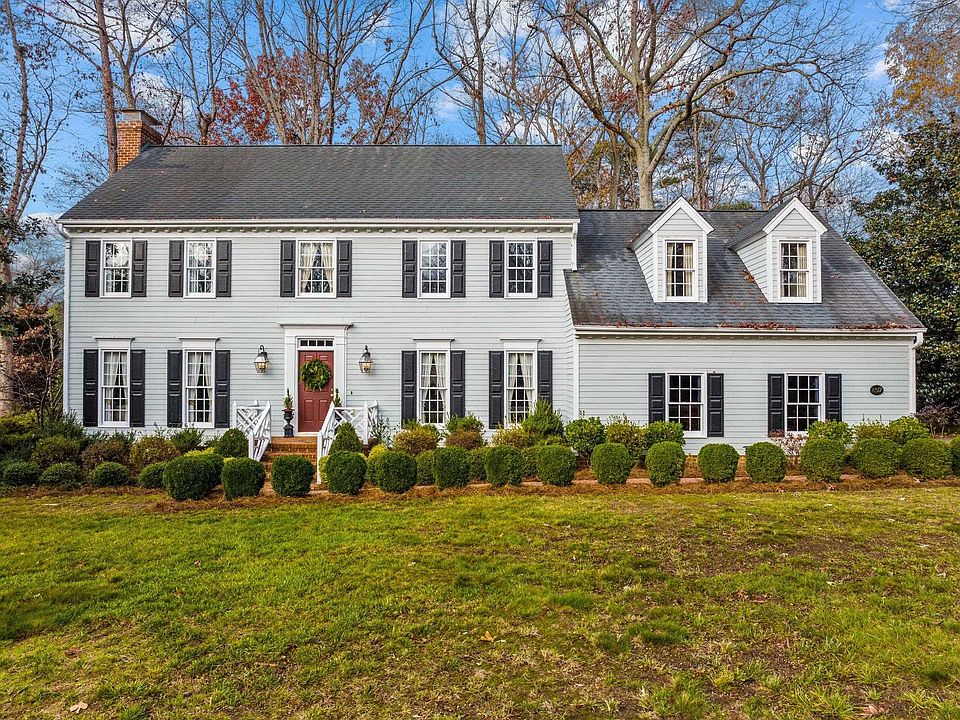 Welcome Home! This beautiful colonial style home on a 1/2-acre lot has so much comfort and convenience to offer! Dual wood burning fireplaces in the Living and Family Rooms. Open Kitchen with upgraded SS appliances overlooking the Breakfast Room with picturesque views of the backyard. New deck to relax and entertain on! New carpet in the Family Room, and upstairs! Private 2nd staircase leads to a HUGE Bonus Room above the Garage. Upstairs boasts the Master Suite w/ a WIC, dual vanities in the bathroom and a tiled shower. 3 other spacious bedrooms and a full bathroom on the 2nd floor! Original owners' & custom built! 5 miles to North Hills, 11 miles to RDU airport, 14 miles to RTP! Great location and wonderful neighborhood with convenience to almost anywhere around the Triangle!