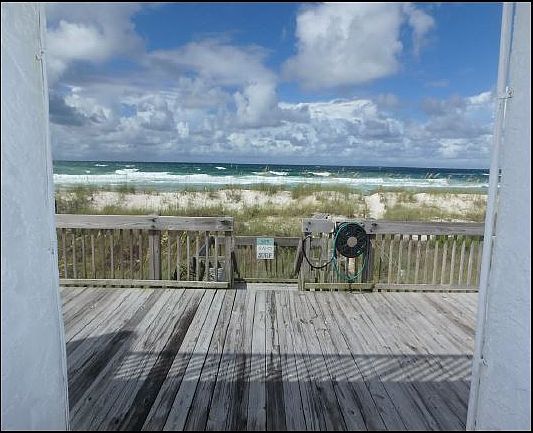 BEACHFRONT 2 bed/2 bath. Appraised Nov 2016 for $255,000. Unique opportunity. Quiet location, totally updated baths, low fees of only $250/mo, only 8 units in this two story well maintained building, strong HOA with reserves. END unit TOP LEVEL condo with gorgeous unobstructed oceanfront view from 16 x 8 tiled patio and living room! New paint, tile, carpet, granite counter tops, SS steel appliances, SS undermount sink, high end faucet, SS tile back splash. Neutral 12 x 12 tile floors in main living areas, white ceramic tile in baths, neutral carpet in bedrooms. Original owners have lovingly cared for this home. Community lower deck runs length of building. Private beachfront access. Quiet, family like location on beach. New A/C. Dedicated off street parking space allows for three vehicles in front of building. Surf Club condos are low maintenance with 30 foot pilings and grade beam construction. Owners of other 7 units in complex are long term owners. Association fees only $250/month and include master insurance, termite bond, monthly pest control, cable, outside maintenance and trash. HOA is well run with maintenance reserves. Recently painted outside in 2010 and roofed with architectural 30 year warranty shingles in 2012. Walking distance to restaurants, mini-golf and amusement parks. St. Andrews State Park and Captain Andersons restaurant are within ten minute drive. By appointment only. Call 770-366-2990
