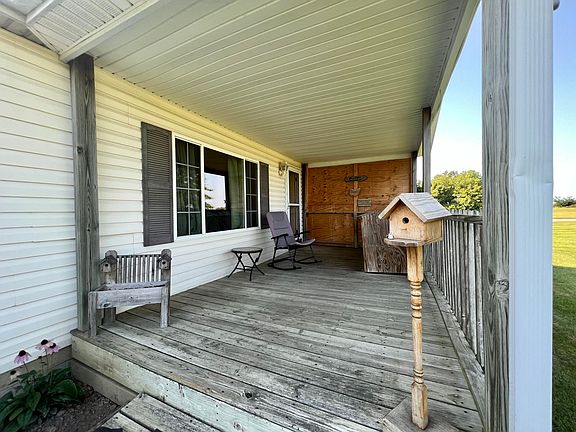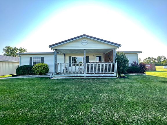 Located on a 2.1 acre country lot, this 3 bedroom, 2 full bath ranch-style home built in 2000 features 1404 SFLA with large oversized 2-car garage with an additional workshop added to the rear. Additional outdoor amenities include a covered front porch, a side wood deck, an above ground pool and deck, paved driveway and several outbuildings which stay. Interior features include a vaulted ceiling living room, a wood-burning fireplace, dining area and owner's suite. Appliances stay except refrigerator, washer & dryer. Updated waterproof laminate flooring in main living areas. Owner's suite includes full bath with shower and whirlpool tub, WIC and double vanity. The detached garage is 40 X 24 with newer metal roof, vinyl siding, a Fire Chief wood burner, 200 amp service, 2 openers, a sliding side door, workbench, cabinets & air compressor. Some shed/kennel outbuildings will stay. (See pictures). Manufactured home has been converted to real estate. Also has upgraded insulation and new windows on rear side of the house. Internet available through Century Link. 24 hr Notice for Showings preferred.