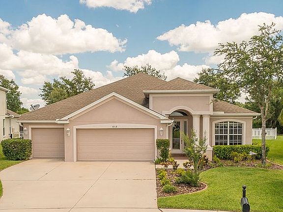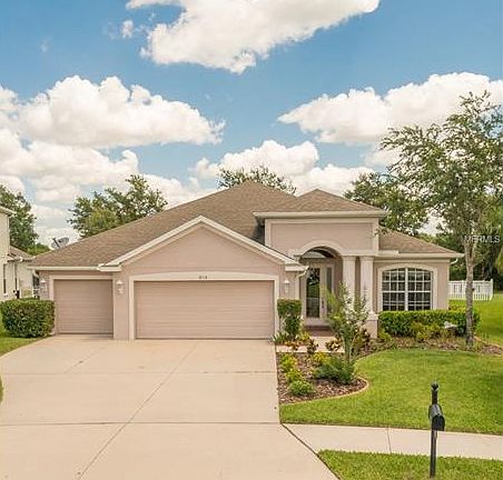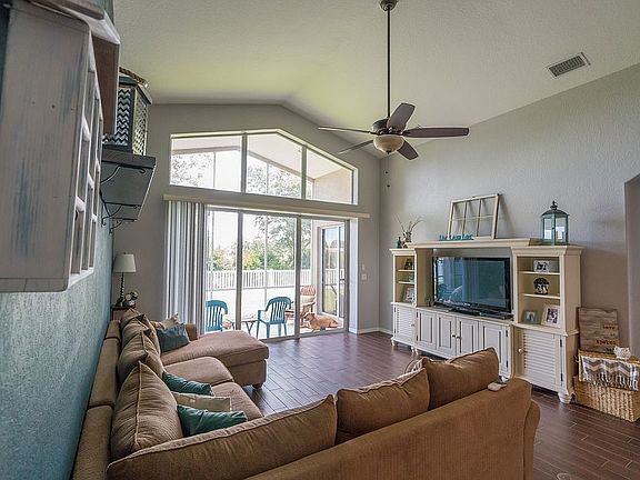 Welcome Home! This 4 bed 3 bath 3 car garage split floor plan house is situated on almost a quarter of an acre of land in the beautiful gated community of Creekside Oaks. The house features vaulted ceilings with an open floor plan living area. The spacious kitchen has solid surface counter tops, wood cabinets and an eat-in area. The master suite has a jetted tub and stand alone shower along with dual vanities. The walk-in closet in the master is huge. The second bedroom also has an attached bathroom. There is a formal dining room and a screened lanai. The fenced backyard provides plenty of space for you and your pets. The 3 car garage offers plenty of space for your vehicles and storage. On June 6th, a brand new A/C system was installed.