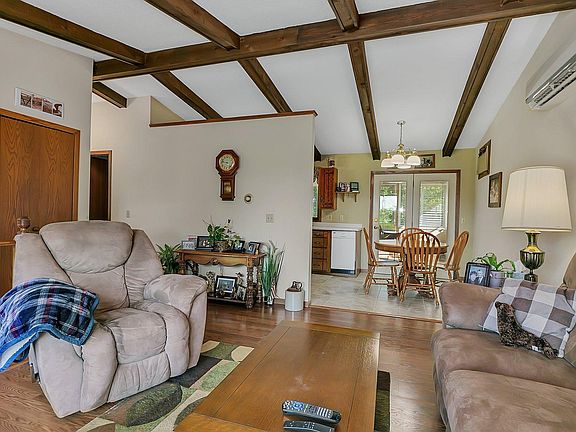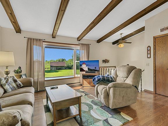 3 BR 2 Bath Split Entry Home on 6 Acres with the privacy you always dreamed of. Only home on this quiet township Road right on the County line. Beautiful porch off the dining room with lots of windows for you to view the countryside. Oversize electric water heater with off peak heating program, Insulated and heated 26 x 36 shop with car hoist and 10 x 36 lean for lots of storage. 18 x 30 Barn/Grainery for your horses or other livestock with fenced pasture. Great yard with lots of shade trees.