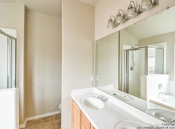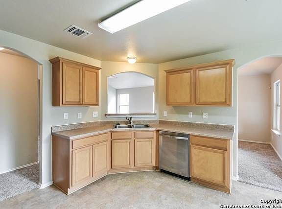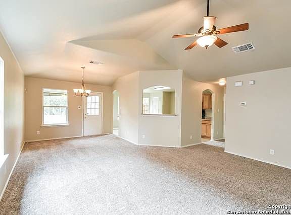 This Converse one-story home offers vaulted ceilings, a master bath separate tub and shower with dual sinks and cultured marble countertops, a master bedroom walk-in closet, and a two-car garage. Upgraded features include new carpet in select rooms and fresh interior paint.