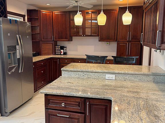 - Features: Skylight(s), Lighting - Pendants, Eat-in Kitchen, Kitchen Island, Flooring - Luxury Vinyl Plank, Granite Counters, Breakfast Bar
