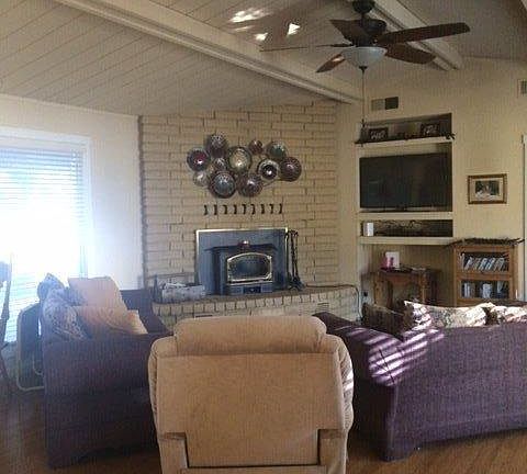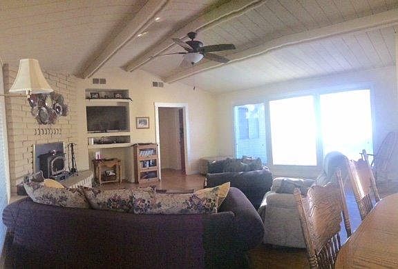 This home sweet home is nestled on 2.29 acres on the countryside of Clovis. With large windows illuminating the living room, open floor plan is designed w/ wood beam ceilings, laminate floors, and a wood burning fireplace. Sizeable kitchen includes refrigerator and newer stove. Nice wrap around breakfast bars accommodates much seating area. Home offers extra room for den or office furnished with atrium. Generous size laundry area leads towards master bedroom and master bath area. Seller has converted garage into 2 separate large bedrooms. One bedroom includes a loft that's ideal for a teenager. Opposite end of home features 2 other bedrooms. Extended covered patio overlooks the impressive scenery of the pasture and foothills. Riding lawn mower is also included with the property. Tax records show different bedroom count, if important, buyer to verify.
