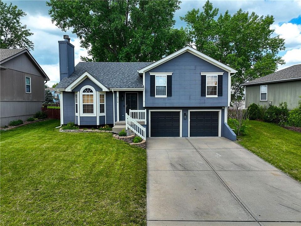 Light pleasantly fills this move-in ready, front-to-back split in Liberty School District. This spotless, LIKE NEW 3 bedroom, 2.5 bath home begins with a spacious living room w/ vaulted ceilings, fireplace, with view to kitchen/dining space. Updated kitchen w/ painted white cabinets & stainless steel appliances. Laundry (INCLUDED) is right off the kitchen. Custom bamboo flooring plus shiplap walls gives the aura of exquisite. Primary bedroom w/ bamboo flooring, dual walk-in closets, plus en-suite. En-suite complete w/ tiled floors, shower over tub, vaulted ceilings. Two additional bedrooms plus full updated bathroom w/ tile flooring, shiplap walls, and updated vanity. Lower level w/ family room, from garage entrance, with half bath. Sub-basement for storage, plus a 2-car garage with plenty of storage space and shelving. Huge backyard w/ mature trees, wooden privacy fencing, deck, & patio. Liberty School District.