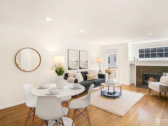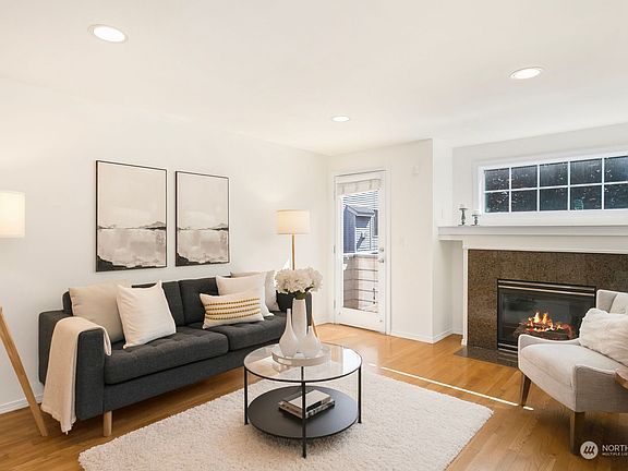 Updated townhouse in the desirable Green Lake Neighborhood. Home features a well-appointed floor plan, abundance of natural light & several updates throughout; including new kitchen appliances, carpet, paint & more! Main level kitchen is equipped w/ SS appliances & breakfast bar. Kitchen opens to a spacious living/dining room w/ gas fireplace & deck. Upper level features the primary bedroom w/ Ensuite, vaulted ceilings & walk-in closet. Second bedroom & laundry complete the upstairs. The 3rd bedroom is located on the entry level & has an attached 3/4 bathroom w/ access to a private outdoor patio, making the perfect setup for a guest bed, office, or flex space. Close to parks, restaurants, easy access to 99, I-5 & Northgate Station. No HOA!