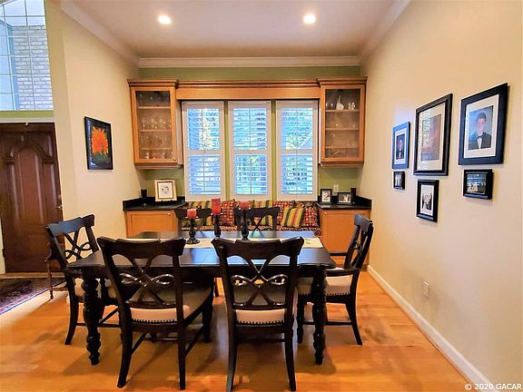 In Avalon, 4-bedroom, 3-bathroom home on a cul-de-sac street, tastefully upgraded and impeccably maintained and plenty of built ins. Quartz countertops throughout, wood floors in foyer, dining, living and bedroom areas, travertine tile flooring in kitchen, bathrooms, bedroom corridor and laundry room. Impressively large master bathroom with built in cabinetry, plenty of storage space with center aisle, massive 6 x 6 showering area with luxury rain shower head and two additional shower heads, travertine stone tile surrounding shower and Jacuzzi walls, two separate sinks with adjustable mirrors, and dedicated cabinet for electronic connections. Kitchen with stainless steel appliances, ample cabinetry with soft closing system, granite backsplash for counters, built in wine rack and wine cooler. Center aisle with sink and space for seating. Plenty of ceiling fans in all areas of the home. The screened in back porch has been transformed in a tasteful place for entertaining or relaxing including a hot tub, gas fireplace and built in grill and concrete paver flooring. access through the master bedroom, living and family areas. A privacy 8-foot-tall wood fence surrounds the back area and the grass/maintenance free impeccable landscaping.