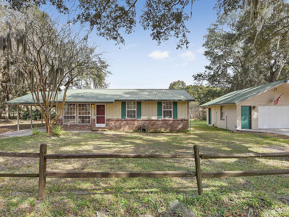 Cozy Charmer in the Country ! Fall in love with the beautiful Oak trees that line this adorable home with a spacious eat in Equipped Kitchen and almost new stainless steel appliances, family room with laminate wood flooring, a large owner suite with huge closet , large 2nd bedroom and bath with new bath/shower insert. Detached 2 car concrete block Garage with washer and dryer, New garage Door and opener and an attached carport. Bring your Boat, RV and all those weekend toys, Easy maintenance with a newer roof, ac and well pump, water heater and 1 year Home Warranty ! Enjoy the quiet of Country living but minutes to schools, shopping, entertainment, the beach and the highway! This is a perfect starter home and is too cute too pass up, call today for your appointment.