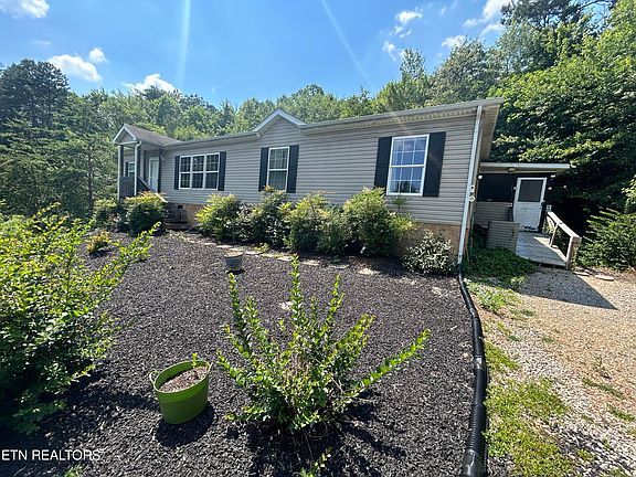 Spacious doublewide on 1 acre in Karns. This home has 3 brs/2 ba, a large family room open to the kitchen/dining area, laundry room, a dedicated office, and a screened in porch over looking a peaceful wooded view. The main living area has engineered wood floors with carpet in the bedrooms. The kitchen features a large island with seating and comes with all appliances including 2 refrigerators. The primary suite has a large custom walk in closet and the primary bathroom offers both a jacuzzi tub and a separate walk in shower. This home is on a permanent foundation and comes with 2 storage sheds.