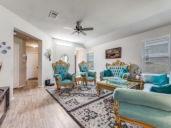 One story home, 4 bed, 2 full bath, 2 car garage. The open floor plan leads to an oversized L-Shaped island kitchen perfect for laying out a buffet spread, overseeing homework while you cook, & is even better as your weekly meal prep station! Upgrades in the kitchen include granite, gas stove, a modern glass subway-like backsplash, and Dallas-white granite with espresso cabinetry that offsets your gleaming stainless appliances. The master retreat features an enormous shower & has convenient access to the laundry room. The three additional bedrooms are located off the living room along a hallway with a shared bathroom & linen closet. Green features, such as a tankless water heater, programmable thermostat, energy star appliances, and a radiant barrier will help keep your utility bills low while the irrigation system will help keep your lawn lush.