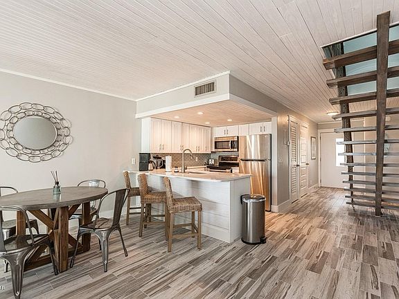 'CURRENTLY UNDER CONTRACT, SELLER ACCEPTING BACKUP OFFERS' Dramatic Renovation completed to this Gulf front 2 bedroom, 3 bath townhouse. Everything is renovated including wood design floor tile throughout, tongue and groove wood ceiling throughout, two year old sheetrock and shiplap walls and custom designed milled cypress stairs. Remodeled kitchen includes cabinets with quartz countertops and stainless steel appliances. 3 full baths have all been remodeled to include 24'' tile showers with marble flooring and vanities with quartz countertops. Upstairs master bedroom includes tiled balcony with beautiful gulf views. Living area opens to gulf front patio for entertaining, sunning or just enjoying the views. One year old Roof. NO HOA fees.
