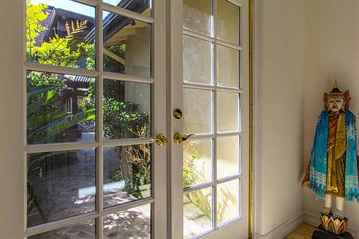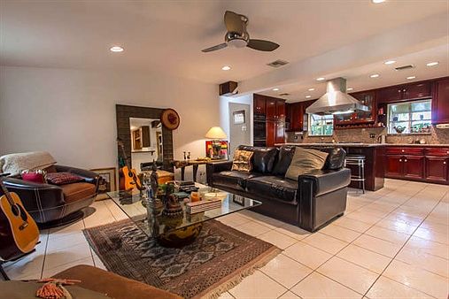 ENTERTAINERS DELICIOUS ESTATE HIDE-AWAY! THIS GORGEOUS HOME BOASTS 5 BEDROOMS & 3.5 BATHS- PLUS SEPARATE STUDIO..COULD BE USED FOR AN OFFICE OR ARTIST RETREAT! Pure comfort in this lush landscaped & Hardscaped property. Privacy & Sprawling ambience! 1/3 acre flat lot property w/all the feel of a Tropical Paradise! 1 level flowing floor plan w/glistening hardwood! Living room boasts a designer fireplace to warm your evening! Enclosed patio w/own bathroom! Welcoming Master Suite w/tub & shower! Wait till you see the walk-in closet w/skylight! Entertain in the Formal Dining room while the cook prepares delicious meals in the gourmet kitchen w/granite counters, mahogany cabinets & center island which opens to the family room w/additional fireplace & wet bar! There is also a top of the line kitchen in the exterior! All the bells & whistles-S/S built-in BBQ/appliances plus granite counters! 3 outdoor glistening fountains plus fireplace! Exterior also boasts: koi pond/bridge; sparkling spa w/waterfall; mature fruit trees! Plenty of parking for guests! Oversized 2 car garage/2 car carport- rear access R/V pking w/2 gates-1 electric & brick-line paved pking! Home has security system w/alarm & Video cams! Newer roof & upgraded 200 amp electrical panel! 2 A/C units!