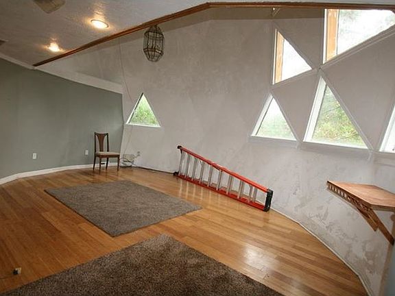 This is a very unique home. This Dome house sits on a private lot with a lot of woods.You can enjoy nature all around you. The Large main room with high ceiling is open to the kitchen. The Bedroom is a loft style. Very light and bright inside with a lot of space. There is a wonderful deck on the second floor which you access from the bedroom. The deck is so private and wonderful. You have a great view and you are sitting in the woods. It is very quiet with a lot of bird song. The home is accessed from a path that leads from the driveway through the woods up to the house. The yard has a fenced in area & Shed. HSA home warranty.