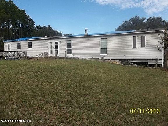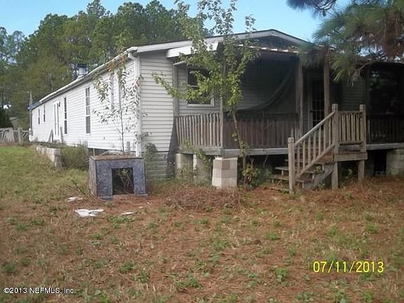 This mobile home is being offered AS IS with no warranties implied. While it needs lots of TLC it does sit on 3.15 acres of rural land with a large pond. It is close to shopping, schools, employment and the Island of Fernandina Beach.