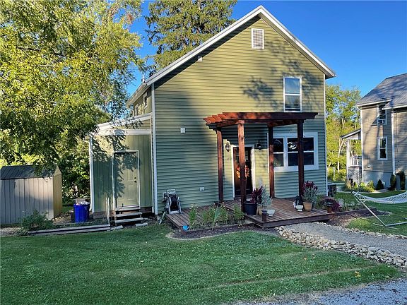 COMPLETELY RENOVATED AND DECORATED TO A T!! GUTTED, WIRED, PLUMBED, INSULATED, NEW DRYWALL, HVAC,, DETACHED 1 CAR GARAGE, STORAGE SHED PLUS ATTACHED STORAGE AREA. VINYL SIDING KITCHEN WITH QUARTZ COUNTER TOPR, LIVING/DINING ROOMS W/ CROWN MOULDINGS, STAIRCASE OPENS TO LIVING ROOM, FIRST FLOOR WITH 8FT 6INCH CEILINGS, HARDWOOD LIVINGROOM, DININGROOM, KITCHEN, CERAMIC IN CATHEDRAL CEILING BATH, JETTED TUB. FIRST FLOOR LAUNDRY. BACK YARD LOOKS OUT TO HORSE FARM. DOUBLE LOT AND MORE!!