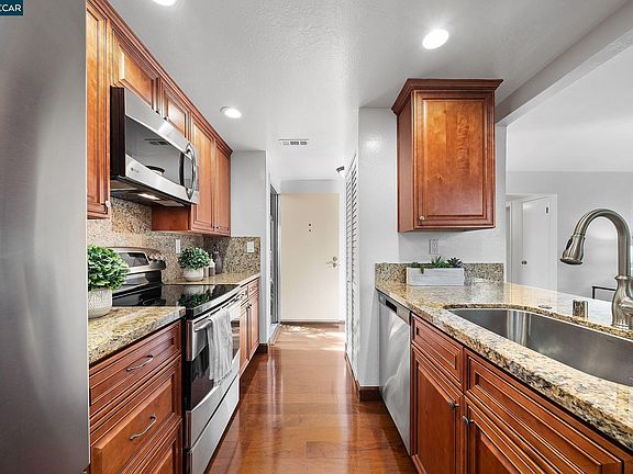 Discover your new home in Pleasant Hill's desirable Shadowood Community! This ground floor 2-bedroom, 2-bathroom condo is move-in ready, boasting a modern interior with a spacious living area, gleaming hardwood flooring, updated kitchen featuring maple cabinetry, stainless steel appliances, granite counters, breakfast bar, and a welcoming fireplace. You'll find comfort in the well-appointed bedrooms and bathrooms. Step outside to your oversized patio for relaxation and outdoor enjoyment. With the convenience of in-unit laundry and fantastic community amenities like a pool, spa, clubhouse, and tennis courts. Enjoy a serene setting surrounded by mature oak trees while still having easy access to schools, shopping, dining, and commuting options. Don't miss the chance to make this wonderful Shadowood unit your new home!