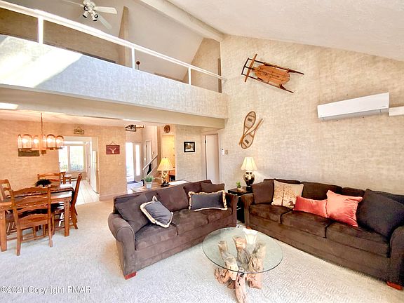 Seller Accepting Back-up Offers Only. 1 YEAR HOME WARRANTY INCLUDED! This super cute contemporary, 2 bedroom PLUS sleeping loft townhome nestled in the Poconos awaits you! END UNIT. 1st Floor Master Suite. Cathedral ceilings, wet bar and fireplace in the living room. TURN KEY - Sold fully furnished with all of the contents in it and ready for you to start renting it out OR enjoying it yourself. There is So Much to do in this Beautiful, Amenity Filled Resort-like Community, you'll Love it! Brand New Mini Split system was just installed in 2018. New Roof & Skylights installed in 2007.