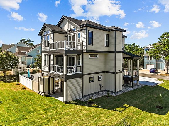 Here’s your opportunity to own a stunning new construction home in the picturesque community of Monteray Shores in Corolla. This turnkey property is exquisitely decorated and fully furnished, reflecting the latest trends in home design. The open-concept living and dining area is filled with natural light, making the cozy family room perfect for relaxing or entertaining guests. The kitchen boasts top-of-the-line stainless steel appliances, quartz countertops, and custom cabinetry. The home features four spacious bedrooms, two of which have en-suite baths. On the lower level, you'll find a comfortable rec room, laundry, and a half bath. The upgraded elevator adds convenience, complemented by smart home technology, including a front porch camera, app-controlled lights, water sensors on all floors, and hard-wired TVs. Outside, the beautifully landscaped yard features a private fenced-in pool with top of the line deck furniture and granite topped bar. An automated irrigation system, Trex decking and LP smart siding give you years of added value, less maintenance worry for years to come. This home also comes with a one year builder’s warranty. This luxurious home offers a blend of modern conveniences, elegant finishes, and a vibrant community lifestyle, making it an ideal choice for those seeking a high-end living experience in Corolla. It’s perfect as a permanent residence, a second home, or an investment property.