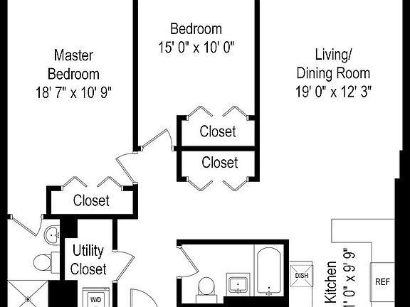 This *Extra large 2 Bedrooms, 2 Bathrooms* features include: Very large South facing 2 Bedrooms, 2 Bathrooms features include: Large chef's kitchen with granite counter-top a breakfast-bar, ample cabinet space and large appliances. Sizable Living room opens to a lovely Juliette balcony with city views. First bedroom will comfortably accommodate KING Size bed & furniture, has a LARGE Closet. Massive MASTER EN-SUITE will accommodate KING size bed with bedside tables a dresser and more has Ample Closet space. Two subway tiled bathroom and a great views from each window. Washer & Dryer in the unit! Short distance to the F and Q/B Lines.
