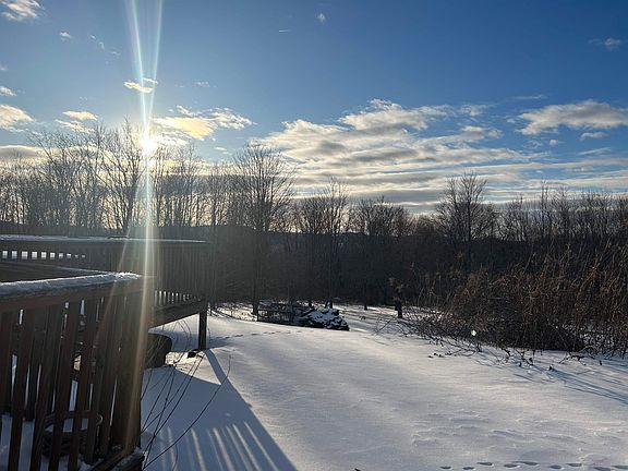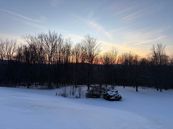 Ideal location just minutes from town, with a country setting and amazing sunset views. This ranch home has nearly 1 and half acres of land with some out buildings. There is a deck overlooking the quiet rolling hill. Open concept kitchen and dining room with glass doors to the deck. Spacious living room with entry closet. 3 bedrooms with closets and a large full bathroom with double vanity. Full basement with laundry and newer washer and dryer. Plenty of storage, woodstove (not hooked up), Boiler has wood boiler, but hasn't been used recently. So much potential with this land for gardening, garage, play area, pool (was there), fire pit and sports. Buy it now and start dreaming about endless summer fun. Walking distance to middle school.