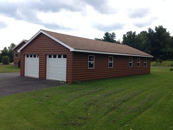 TOWN OF PERU This home is just under 2,000 Sq. Ft. and with a full poured concrete basement with patio walk-out doors, the Sq. Ft. could easily be doubled. With so many amenities like the over sized 24'x48' garage, full paved circular driveway and new log siding, just to name a few, this home is truly a must see to appreciate.