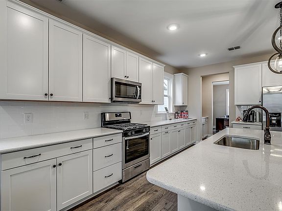 - Features: Breakfast Bar, Kitchen Island, Pantry, Stainless Steel Appliances, Solid Surface Counters