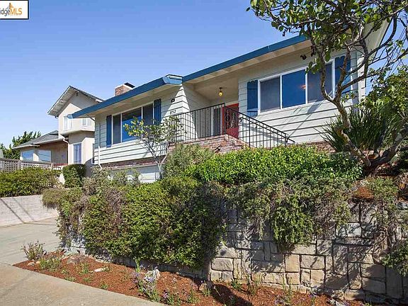 First time on the market, this state of the art 60's home exudes a sweet sitcom vibe. Cosmetic fixer. We have done some fluffing, however the original details are in tact. Living room has floor to ceiling brick fireplace, rich wood floors and vaulted beamed ceilings. Split level to open dining room, spacious kitchen and adjoins oversized breakfast/family area with a slider leading to patio and lush garden. Main level has principal bedroom with bath and walk-in closet. Split level to two additional bedrooms, hall bath and laundry. Stairs up to expansive bedroom with tremendous possibilities (Master retreat?) with big bay views. Sited on a cul-de-sac. Minutes to Central Plaza and BART, 10 minutes to Cal. , Berkeley and 30 min. to the S.F. Perfect home to live in while making it your own. It has a long and happy history with the family who resided here for generations, ready for a new chapter!