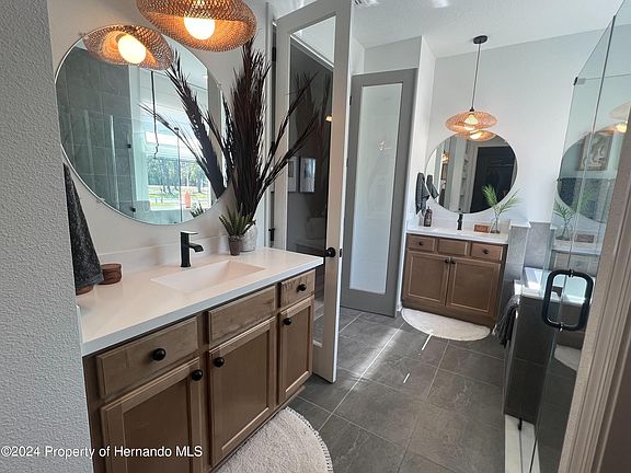 Storage abounds in this residence, with a walk-in kitchen pantry, a convenient pocket office space, and ample closets throughout. Retreat to the lavish primary suite, boasting a generously sized walk-in closet and a spa-like owner's bath. Indulge in the luxury of a garden tub, double vanities with quartz counters, and a spacious tiled shower.
