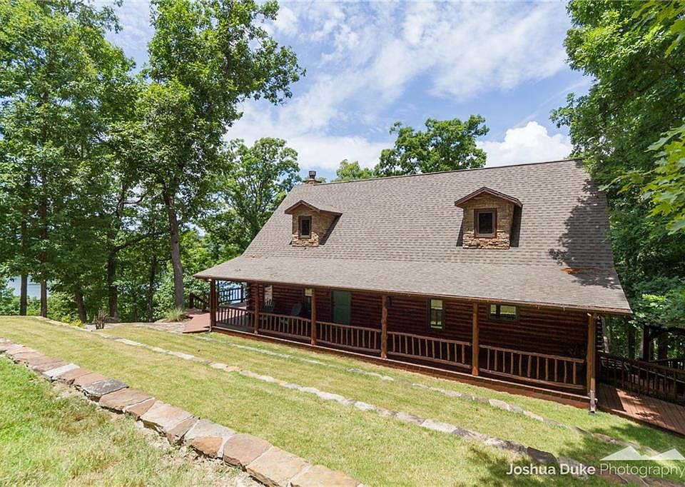 Stunning views of Beaver Lake is the backdrop for this luxury cabin w/ many custom features and is professionally decorated. Great rm w/ massive stone fireplace and vaulted ceiling includes living and dining rm which opens to gourmet kitchen. All this opens to spacious decks and covered porches. A loft add living space for media rm. Each bedroom en-suite with gorgeous lake views. Oversized garage provides plenty room for vehicles and workshop. 8 person, hot tub is included in the sale.