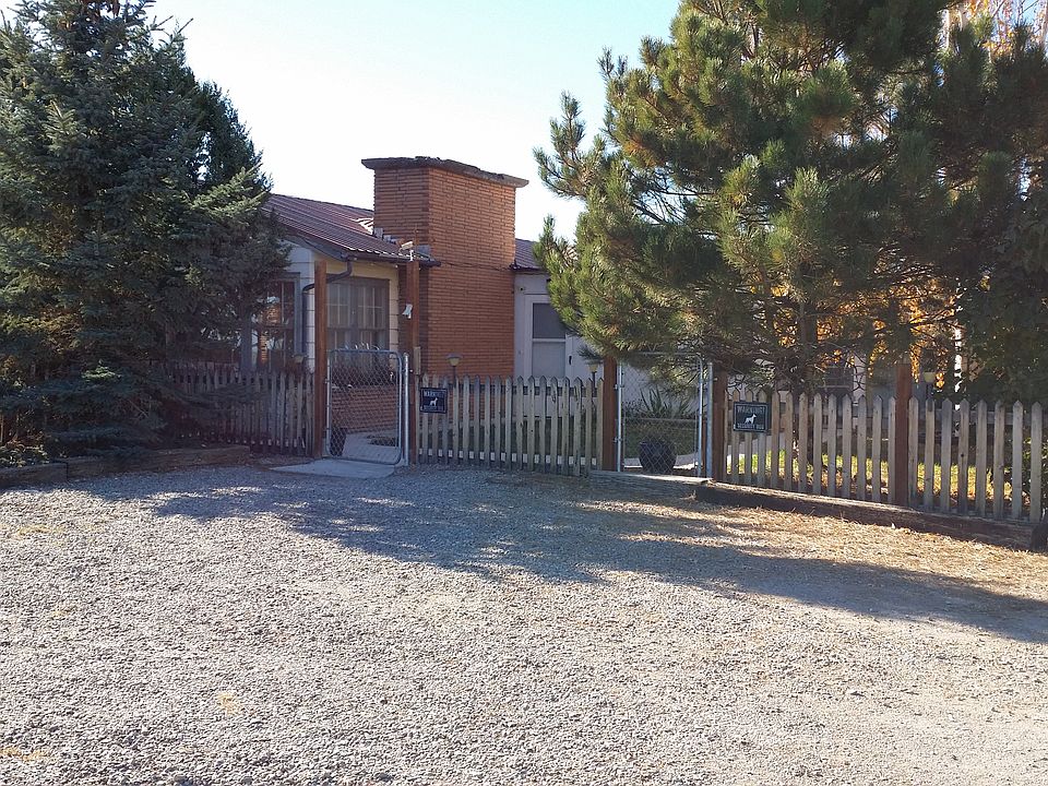 Country living amenities with in-town convenience! Located just outside of town, this property has lots to offer. Sitting on 3 acres with great views of the mountains and an expansive fenced yard with mature garden area, this horse property features a 3 bedroom, 1.5 bath house, shop, and several outbuildings. The house has a rustic, country feel with wood accents throughout. The kitchen is equipped with stainless steel appliances and a nice dining area with additional counter space and storage. The large Master Bedroom includes a walk-in closet and additional storage. A cozy family room has great natural light with lots of windows, brick fireplace, and an adjacent office/nook with built-in shelving. Lots of built-in storage throughout.