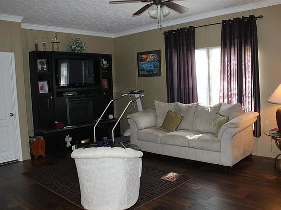Absolutely beautiful 3 bedroom 2 bath double-wide home on 4 acres of nice and quiet land. This home is better than new!!. Brick underpinning, covered back porch. Two acres have been cleared and fenced in. There are 2 acres more of wooded land. This home is only 4 years. Gorgeous kitchen with island and all appliances included. Nice master bathroom with walk-in closet and sitting area. Built in TV shelves with fireplace to remain with sale. Outbuilding to remain with sale. Seller will get home FHA approved if necessary.