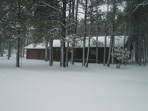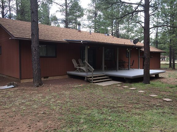 Seclusion at its best! This nice Ski-Hi Retreat Home is located up against the US Forest Service Land and is at the end of a Cul-De-Sac. This 3 bedroom, 2 bathroom home has an attached two car garage and the lot has many large Ponderosa Pine Trees. This is a hiking paradise with direct access to the US Forest. From the rear deck you can listen to Elk Bugle in the Fall. The road to Sky-Hi is paved and Pinetop & Pinetop Lakes Country Clubs are only minutes away. Very nice single level cabin with split floor plan, propane forced-air furnace, with owned 250 gallon tank. Wood burning stove on raised stone hearth with its own air distribution system through the furnace ducts. Central vacuum system, smoke detectors, electric heaters in bathrooms, wood paneled great room and dining area. All kitchen appliances new in 2012. Satellite Dish antenna. Double pane windows. Ceiling fan in great room. Large 2 car garage/workshop. Large composite rear deck and covered front porch. Friendly Sky-Hi neighborhood. Enjoy sitting on the deck and looking out at the national forest which is just over the fence, with easy access for walking and cycling. It is partially furnished to be move-in ready for first time cabin owners. Utilities: Sky-Hi Domestic Water Improvement District (the best-tasting water on the mountain), Navopache electric, Frontier phone & internet.