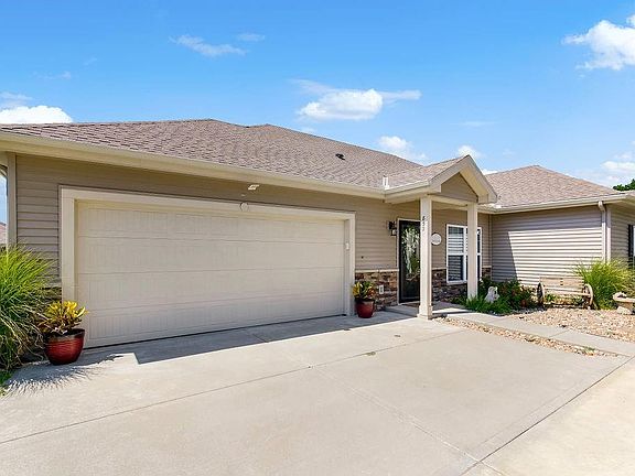 Welcome home to this lovely 3 bedroom, 2 full bathroom ranch style home in the highly sought after Ranch Villas at Santerra. Enter into the spacious, vaulted living room, open to the eat-in kitchen, including granite countertops and hardwood flooring. The master suite boasts a walk-in closet and ensuite bathroom with a double vanity and walk-in shower. This home has wider doorways, making it accessible and ensuring comfort for any homeowner. Enclosed porch for additional space to entertain or enjoy a cup of coffee. Two car attached garage, beautifully landscaped and iron fence. Lawn maintenance, snow removal, and a clubhouse for entertaining large gatherings, which also has an exercise room. This one won't last long! Schedule your showing TODAY!