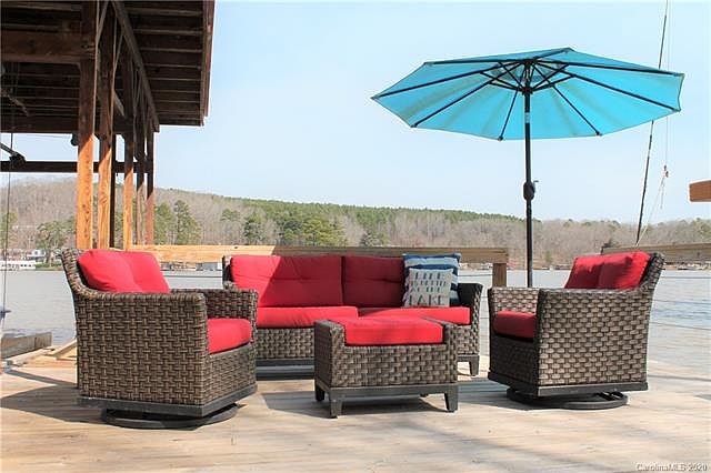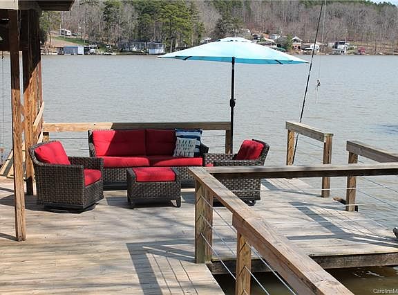 New price! Relax all summer on the water of Badin Lake on this enormous pier on a main channel in Pinehaven Village. This gorgeous lake-front home boats sunsets and sunrises and lake views in all directions from a cozy outdoor covered porch and pier overlooking the water and peaceful Uwharrie National Forest. Many impressive upgrades to the pier in March 2020 including metal cable railings and a new roof with 30-year architectural shingles in 2019. Extremely well maintained house with hardwood floors throughout, 4 bedrooms, 2 bathrooms, and 2 living rooms, a laundry room, and open kitchen. Level lot, entirely fenced in, with two covered boat slips with lifts and mooring whips for parking additional boats. Has a strong rental history offering a chance to enjoy a lake house and extra income all in one. Definitely a MUST SEE! Furniture negotiable.