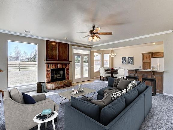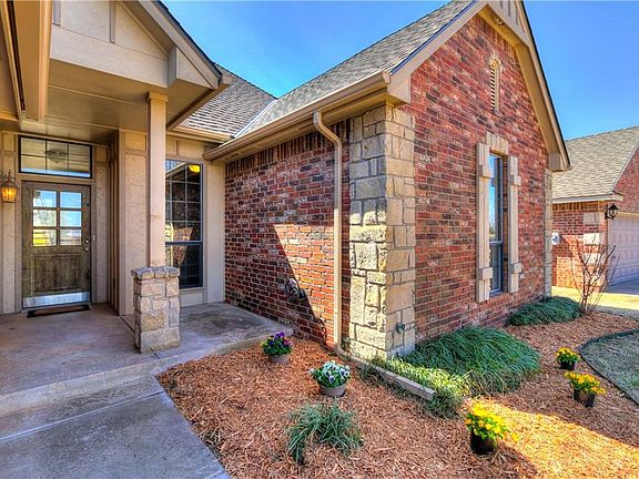 Imagine rolling hills and picturesque views from living, dining and master bedroom. Wonderful, covered patio for entertaining and enjoying the Oklahoma sunsets. It's ready for your hot tub. Beautiful, manicured greenbelt with mature trees. Fantastic 3 bedroom home with bonus/theatre room upstairs, 2 full bathrooms. Recent updates include: new roof and gutters, new paint and carpet throughout, very nice stainless steel gas range, microwave and dishwasher. This home offers an in ground storm shelter. Don't miss out on this beautiful home, in a cul de sac, close to shopping, restaurants, Mitch Park, schools and easy access to everything Edmond.