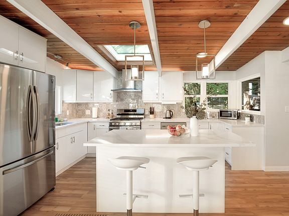 This stunning home has been beautifully renovated and offers 4 bedrooms, 3.5 bathrooms. As you enter, you are greeted by a grand and modern open-concept space, perfect for a family. There is another separate family room and office, perfect for working and relaxing by the fireplace. Downstairs a large games room awaits with a lot of sitting area, a ping pong table, a TV, and a fridge for all your games room snacks. The large carport and driveway offer parking for multiple vehicles. You will be minutes from world-class nature trails/outdoor activities and attractions. The gorgeous backyard backs into a greenbelt where you will enjoy your stay surrounded by lush green serene forest.