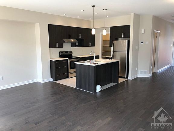 Beautiful END unit town home in Riverside South and close to all amenities. Three bedrooms on the second level, including a master bedroom with an en-suite bath and a walk-in closet. The Master Bedroom features a large walk-in closet and full bathroom. Two additional bedrooms, full bath and convenient laundry complete the second floor. Builder finished basement hosts cozy family room with pot lights throughout. Available Aug 1. Tenant is responsible for utilities and hot water tank rental. NO PETS NO SMOKERS PLEASE.