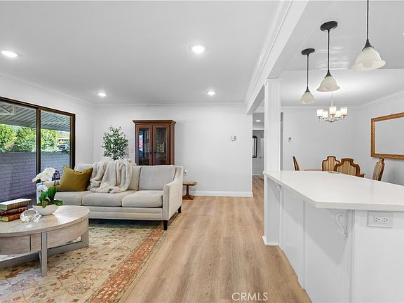NO STAIRS to your beautifully remodeled end-unit "Casa Linda" model, with a highly sought-after single-story floor plan. Located on Nob Hill, a highly desirable quiet location within Laguna Woods. This beautiful property offers buyers a great location combining comfort and convenience. Step inside and prepare to be mesmerized by the quality detail of the main living area, expertly designed with open-concept living and entertaining in mind for that sense of easy living. Step outside to your private patio for outside coffee and dining options. With two spacious bedrooms and two elegant bathrooms, every detail of this property exudes sophistication. The lavish primary suite serves as a true retreat, featuring a generously sized closet and a large shower. The gourmet kitchen is a standout highlight in itself adorned with stunning quartz countertops, a custom backsplash and a large island. The kitchen was also designed with beautiful cabinetry, soft-close doors, drawers and high-quality stainless-steel appliances. This property comes with new paint, newly installed high-end flooring, inside Laundry, smooth ceilings, crown molding, recessed lighting and newer dual pane windows throughout most of the property. Laguna Woods Village is the pinnacle of active senior living with exclusive access to incredible amenities offered by the community. Enjoy the privileges of seven (7) clubhouses, five (5) pools, two (2) golf courses, three (3) fitness centers, Ten (10) tennis courts, an equestrian center, complimentary bus service, and more. Don't miss out on this rare opportunity to own a truly luxurious home in this exceptional community. Take the first step toward an upgraded lifestyle today!
