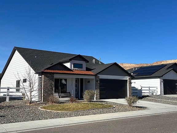 Here's your opportunity to own a charming home in the highly desirable Cresthaven Acres Subdivision! This beautifully maintained home offers a perfect blend of comfort and style. Featuring a cozy coffee bar with a mini refrigerator, that is ideal for starting your day. The Hunter Douglas wood blinds add an elegant touch to the interior, while the copper roof enhances the home's curb appeal. The private backyard provides a serene retreat, perfect for relaxation or outdoor entertaining. Conveniently located within walking distance to Palisade High School, the Colorado River Trail, River Bend Park, and downtown Palisade, you’ll have easy access to local attractions and amenities. Enjoy the charm of a front porch swing, perfect for unwinding in the evenings. You'll love the open kitchen boasting a beautiful quartz countertop and equipped with a gas range oven, ideal for cooking meals with precision and ease. The garage is already wired with 220 power for an electric car charging station. This home offers the best of Palisade living – don’t miss out!