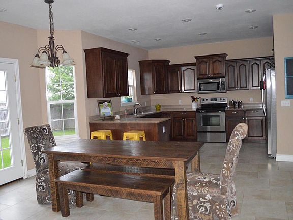 Welcome to this well maintained, all brick, 2,200 sq. ft. ranch style home. Featuring an open floor plan, 3 large bedrooms and the possibility of a 4th bedroom or spacious second living space. The bonus room is freshly painted with new laminate wood flooring in 2019. This lovely single family home features granite countertops throughout, stainless steel appliances, hard wood floors, tile, an attractive shiplap gas fireplace and 10 ft ceilings. Relax in the jetted tub in the master bath, on the back patio, or on the newly built sitting deck, Additional features include a privacy fence, irrigation system, a “Twister Safe” tornado shelter, several upgrades throughout, beautiful sunsets and rural views. Don’t forget the sought after amenities of the desirable neighborhood, Cobble Creek, including basketball court, park, gated swimming pool, pool house, and covered community pavilion. Don’t wait, this property won’t last long!!!