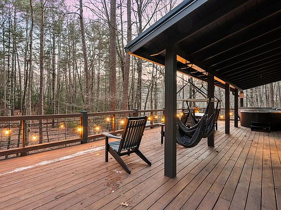 Welcome to Aska Hideout — your cozy retreat tucked away in the Blue Ridge mountains. This cabin exudes charm and seamlessly blends modern luxury with mountain living. Recent renovations ensure high-end finishes throughout from the ceiling to beautifulhardwoods and everything in-between. The bedrooms have been thoughtfully furnished with designer pieces, and comfortably sleep up to five people. The expansive deck is a fan favorite offering plenty of room for unwinding in the hot tub, relaxing in the swings, and extra room for kids or pets to run free! The location offers the best of both worlds: 9 easy miles to Downtown Blue Ridge and situated in the hub for outdoor enthusiasts! Located just minutes from several hiking trail systems, one minute from the Toccoa Riverside Restaurant, and just 5 minutes from gem mining, putt-putt golf, tubing, and guided fly fishing tours on the Toccoa River! Adventure is right outside your door! Aska Hideout is offered turn-key as an established STR with ALL 5 star reviews, and it also allows for the unique opportunity to own TWO cabins side by side, in the renowned Aska Adventure Area, making it ideal for a family retreat or a convenient turnkey investment! The adjacent property is connected by a short trail through the woods. Full list of upgrades provided upon request.
