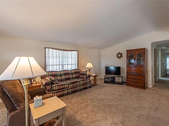 Over 55 Community, inground pool, putting green, bocce court, HOA w/amenities and activities, spacious 2 bedroom, 2 baths with open floor plan, rear deck, garage with work shop plus carport, shuttle bus service, home warranty included, contact agent for specifics, mobile home agreement, taxes are estimated, roof 2015, new full size shower stall 2016.