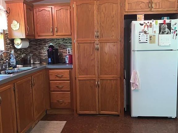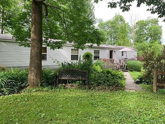 Three bedroom two bath 14X80 trailer home has a quality built block foundation on poured slab base. The eat-in kitchen opens to a large living room with cathedral ceiling. There is a laundry room and walk in pantry just off the kitchen. All appliances stay. Master bath with corner tub has an additional separate shower and skylight. The other bedrooms and a second full bath are at the opposite end. You'll live in a private park like setting on partially wooded 1.3 acres. The garage is a solid built steel Quonset hut with room for storage and/or shop area. Double wide driveway.