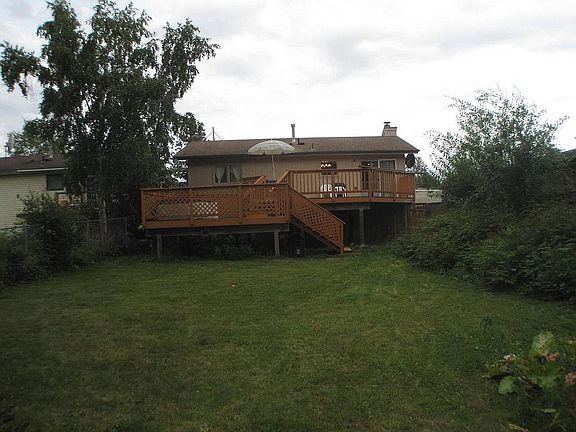 Classic Anchorage split-level on cul-de-sac in Abbott-Elmore 1800+ sq ft; cathedral ceiling living room dining room and kitchen, four bedrooms (two beds one bath upstairs, two beds one bath downstairs) and large bonus room downstairs. Backyard fenced dog-tight, good-sized lawn, garden shed (needs work), Huge 2-level deck. Inside access secure attached storage shed for camping gear, hunting and fishing stuff, luggage, etc. Front yard has 3-car parking including temporary-type car shelter, small lawn. Approximately ¾ mile to elementary school, well drained; highest point in neighborhood, no steep hills. Great view of mountains from living room. Neighborhood full of kids. Available NOW. See pictures. Call to talk and to make an appointment to see. View upon appointment. Owner sale. Asking price $359,900.00 * *(Always negotiable) Phone (907) 229-0244, Don.