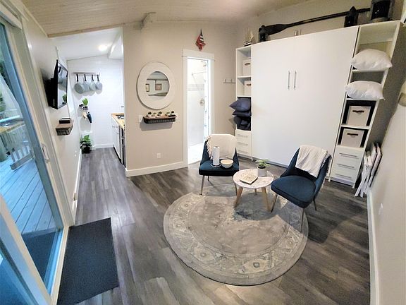 Brand new studio condominium in the Beech Lodge building at the historic Portage Point Inn & Marina. Next door to Beech Lodge 3, same owner, both for sale. Your family turns into your bedroom when pulling down the queen size murphy bed. All furnishings, fixtures, appliances, and decor are all brand new right down to the knives & forks. Shower stall is tiled. Family's sliding glass patio door opens onto your private deck. Beech Lodge owner's common deck facing Portage Lake is directly across from your entry door. Mini split unit supplies your heating and A/C. Great rental income. You have use of all the Inn's amenities, ie. pool, hot tub, sundeck, playground, Portage Lake beachfront. 100 yard walk to either Lk MI or Portage lake. Sun rises over Portage Lk and sets over Lk Michigan. Fifteen minutes to Arcadia Bluffs golf course or the Little River Casino. Half hour to Crystal Mountain Ski & Golf Resort. Snowmobile trails closeby. Rent slip space to keep your boat at the Inn just steps away from your condo. In the summer visit the Inn's bar, pizzeria, and eatery right across the street.