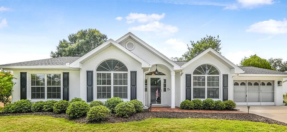 Welcome to a Providence model 3 bedroom/2 bath/double-garage newly and comprehensively updated, located in the fully gated 55+, low-HOA fee, friendly and amenity-filled country club neighborhood of Oak Run. A lovely front elevation with beautiful stucco finish and large 7-foot Palladian windows on a home of concrete block construction. Professionally painted throughout. Professionally landscaped yard and brick patterned walkway leads to the front door with fan shaped glass transom, dual side windows, and new lockset opening to a vaulted entryway and new lighting fixture. Spacious and bright living areas, new luxury vinyl flooring. Great room with cathedral ceiling, new light fixture with 72” ceiling fan and remote control. Separate dining room w/ large 7-foot Palladium window with two-inch blinds and a new lighting fixture. Updated kitchen with all new Whirlpool stainless appliances, double composite sink with new faucet, updated cabinetry with all new hardware, glass door-fronts and a lazy Susan – with crown molding, new smoke detectors and track lighting overhead. Adjacent eat-in area with new lighting fixture. Sunroom with double spacious entryways, new lighting-fan fixture with remote control – and access to the covered patio via the double sliding glass doors, and two large windows overlook mature flowering crepe myrtles, butterfly bushes and a palm tree. Through French doors is the large master bedroom suite with tray ceiling and new lighting-fan fixture. Separate dressing and make-up alcove with vanity, three-pane concave mirror, two types of lighting, and drawer and cabinetry. Adjacent to the large walk-in closet with shelving and attic access is the master bath with an extended length vanity with laundry basket, indirect and direct lighting and glass block, new toilet, whirlpool bath and roomy walk-in glass enclosed shower. The second bedroom has a new lighting-fan fixture, closet with shelving and WiFi access. The third bedroom is brightened by a 7-foot Palladium window and new lighting-fan fixture with remote control. Adjacent tiled bath has vanity, new toilet and enclosed walk-in shower with built-in seating. The laundry room has extra-large Maytag MCT commercial washer and dryer with adjacent utility sink -- and natural light from its window, and lovely built-in cabinetry. The two-car garage houses the 12/2021 HVAC system and 2021 modern water heater, and a door to the back covered patio and mature flowering plantings. The garage incorporates substantial cabinetry with a roomy countertop workspace, new electrical box, Toro electronic irrigation controller, and new Chamberlain Whisper Drive garage door system, roof 2009. The Oak Run community has a full range of amenities including gated 24-hour security with electronic monitoring, multiple recreational facilities with both indoor and outdoor pools, 18-hole golf course with clubhouse and restaurant, modern fitness centers, pickle ball and tennis courts, shuffleboard, bocce ball, billiards, card room, lending library, more than 50 hobby and enthusiast clubs, free local neighborhood cable channel and dog park -- and only a modest HOA fee. Oak Run in Central Florida offers easy access to Ocala, comprehensive medical facilities, excellent shopping, a diverse selection of quality restaurants, countless churches and opportunities to engage in community and volunteer services -- with easy access to sunny beaches.