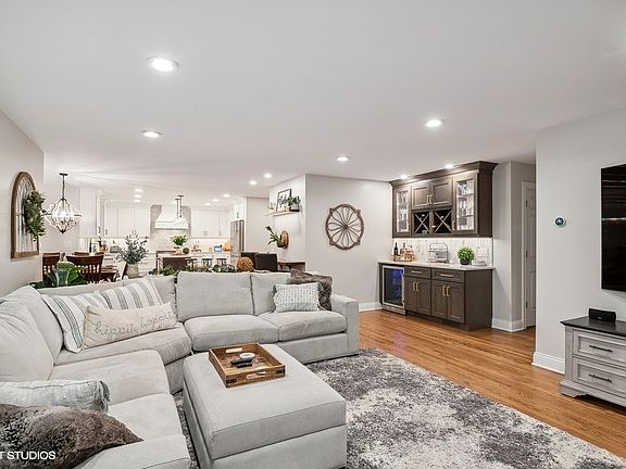 Newly renovated Lakewood home on Redtail Golf Course with beautiful Sunset Views. Stunning home wows you as you enter the grand foyer and lead yourself to the executive kitchen. Newly remodeled kitchen boasts high end self closing cabinets topped with quartz counters and extended island with seating. Stainless steel appliances, Viking stove, Bosch dishwasher and four door flex zone Samsung refrigerator, in counter microwave drawer and deep sink with modern fixtures. This kitchen is a show stopper and opens to the bay window eating area and family room. Enjoy cozy nights by the brick fireplace and entertain easily with the dry bar nook with lighted cabinets, wine storage, and beverage cooler. Abundance of storage in the mud room with new floor to ceiling cabinets and designer tile floors. Open living room and dining room are conveniently located off of the foyer leading to the second floor. Newly refinished wood flooring throughout the 1st floor. Primary bedroom and newly remodeled primary bathroom with soaker tub. Vaulted ceilings add to the spacious area and Spa-like primary bathroom. 2nd bedroom provides private ensuite and bedrooms 3 and 4 share a jack and jill bathroom. Additional bedroom in the basement along with roughed in plumbing for bathroom and radiant heated floors. Full house water filter is an unexpected bonus. Newer large cedar deck overlooking the 5th hole on golf course in private tree lined backyard. Large walk in attic storage area. Close to beaches, shopping, schools and expressways.